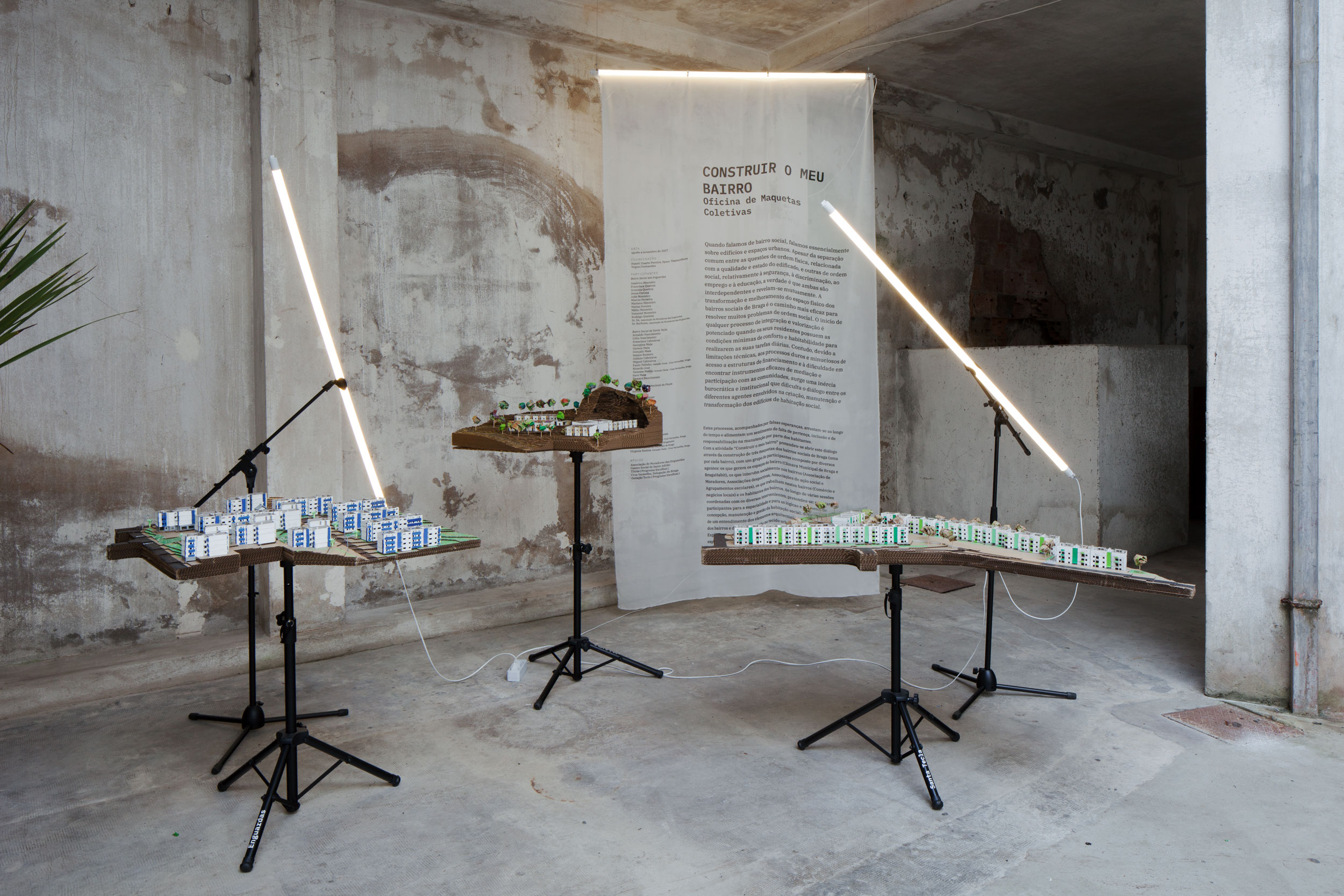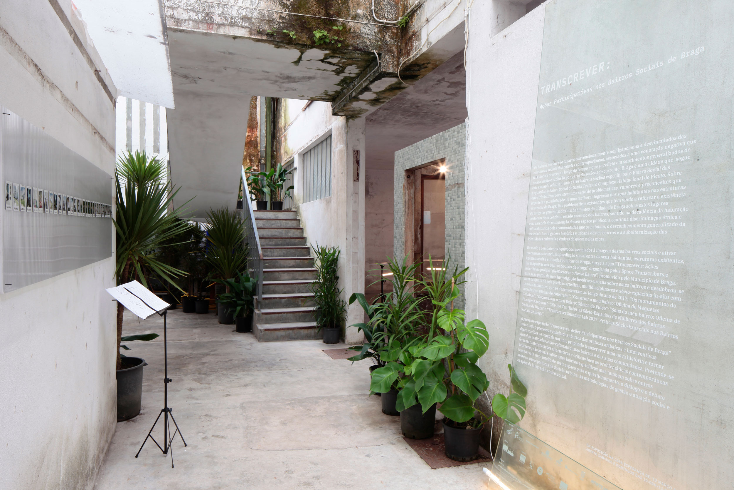 A exposição "Transcrever" reune não apenas o material de arquivo e a investigação histórico-urbana referente aos bairros sociais de Braga, mas também os resultados abertos das práticas artísticas e interventivas desenvolvidas com as suas comunidades.
